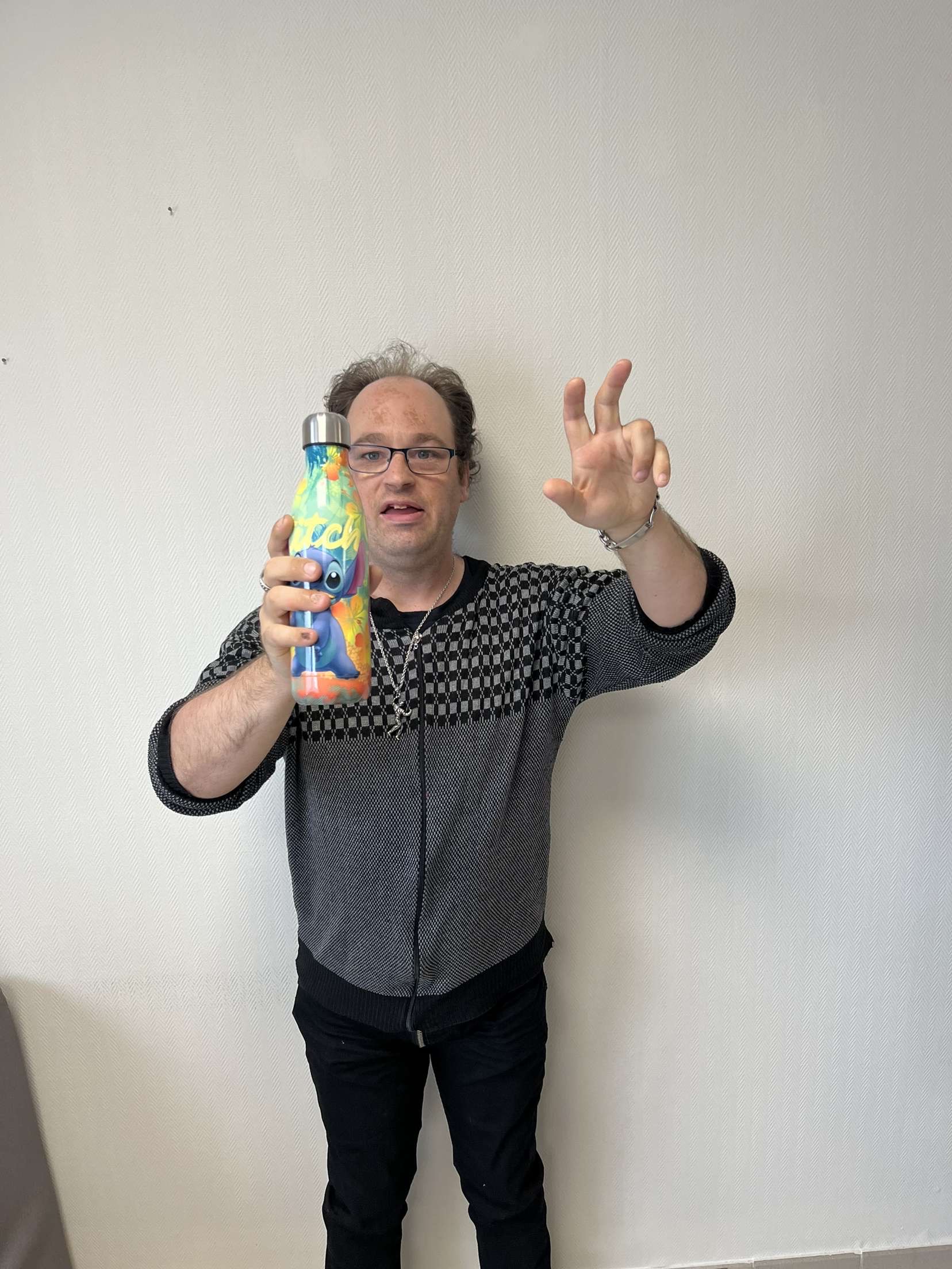 Il avait choisi de partager un bon gĂąteau au chocolat et a souhaitĂ© une gourde Stitch en cadeau đ