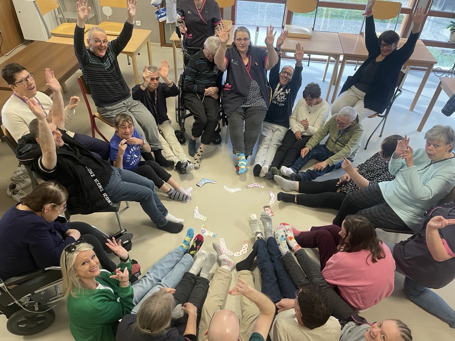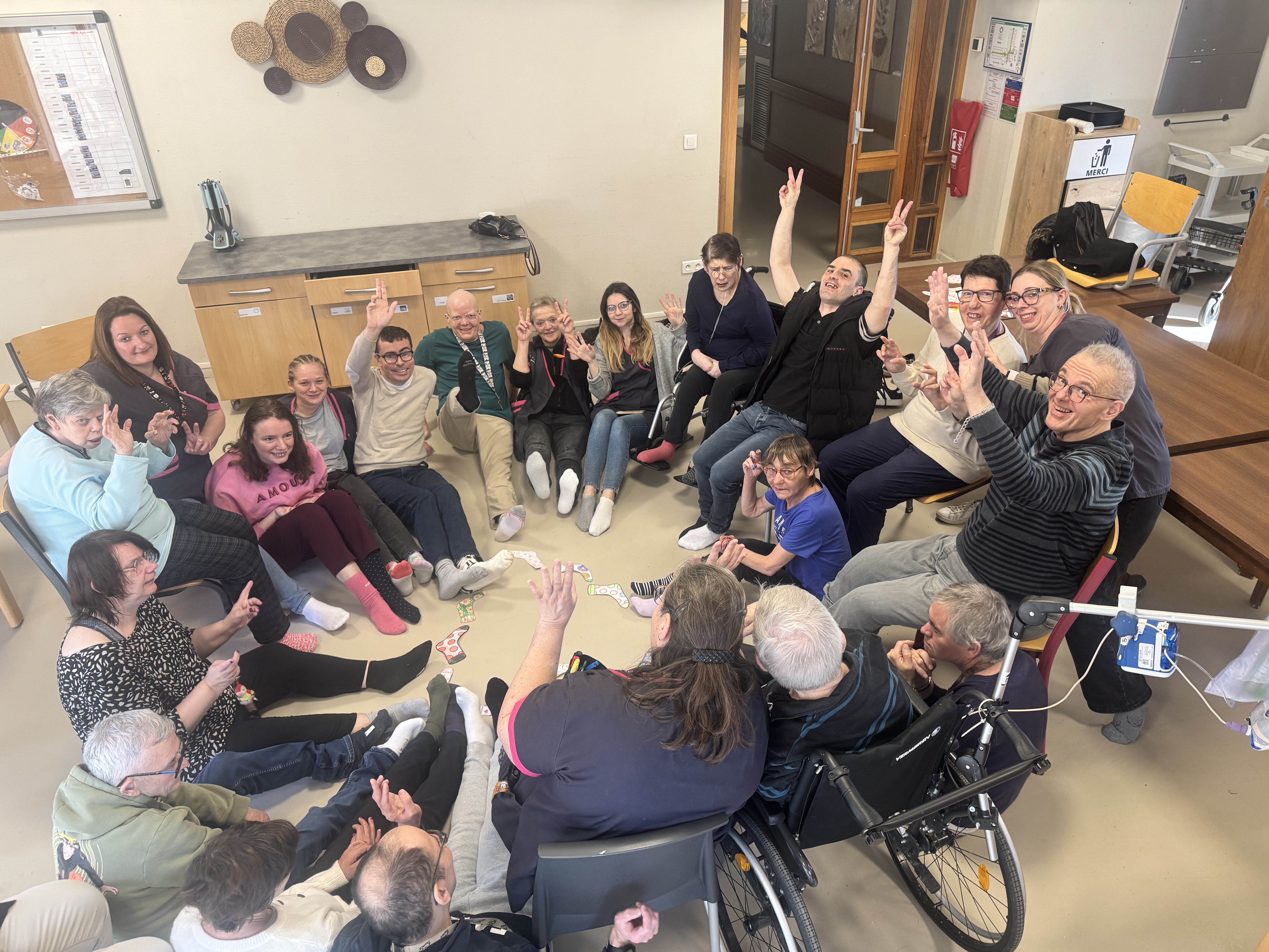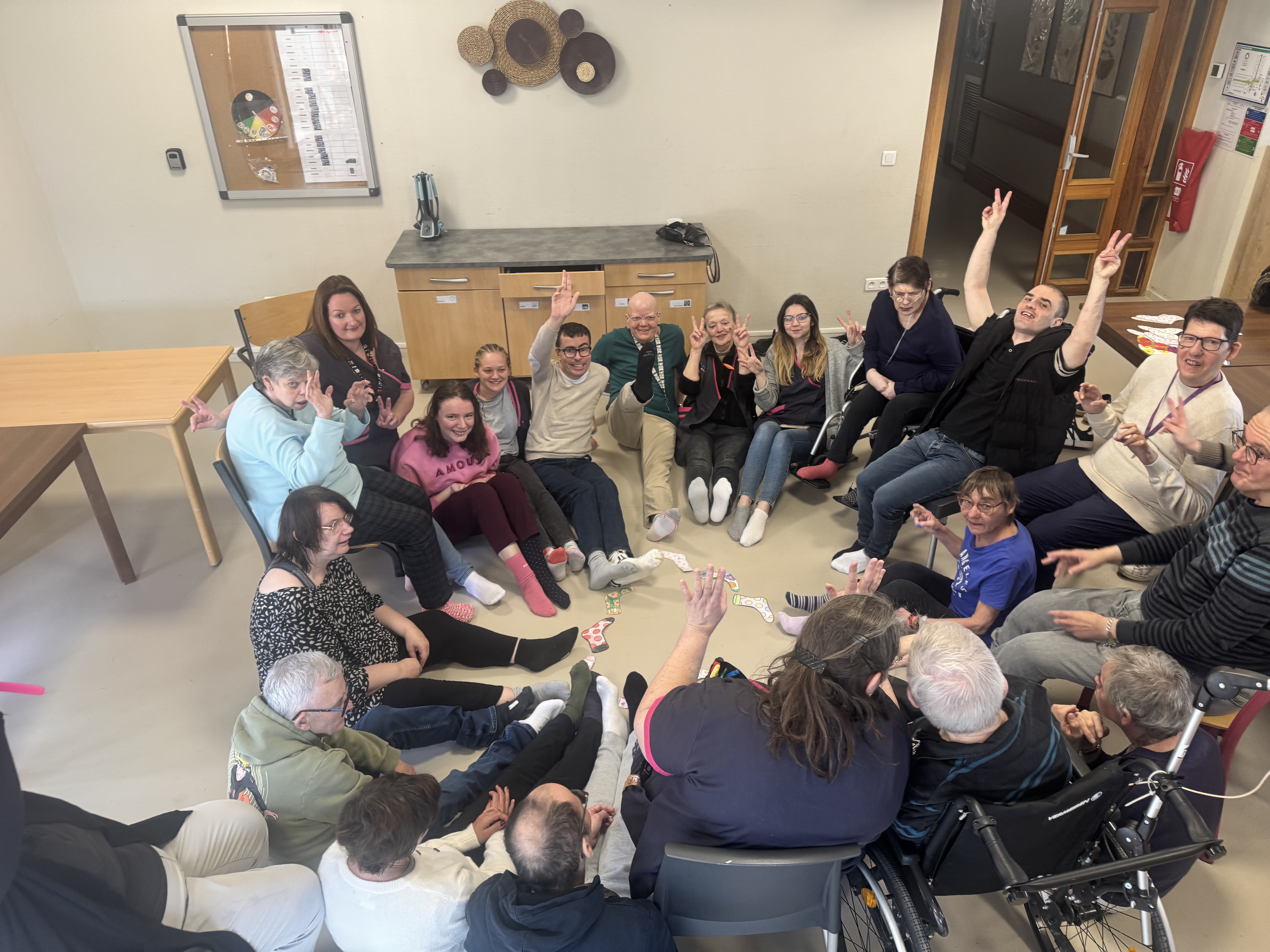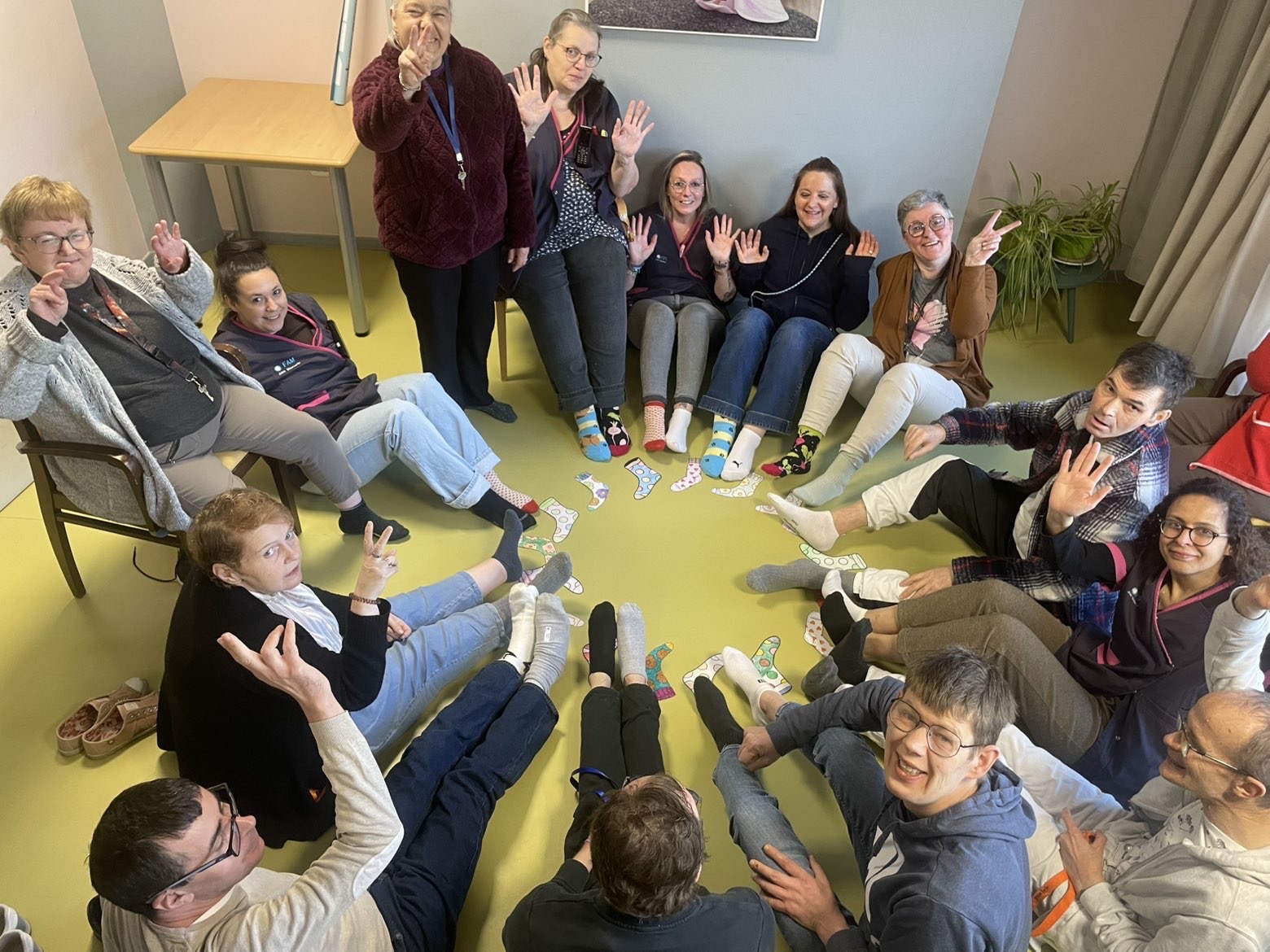 Ă lâoccasion de la journĂ©e mondiale de la trisomie 21, cĂ©lĂ©brĂ©e le 21 mars, les rĂ©sidents et les professionnels du Foyer dâAccueil MĂ©dicalisĂ© de Fenain se sont mobilisĂ©s autour dâun geste simple mais porteur de sens : porter des chaussettes dĂ©pareillĂ©es đ§Š