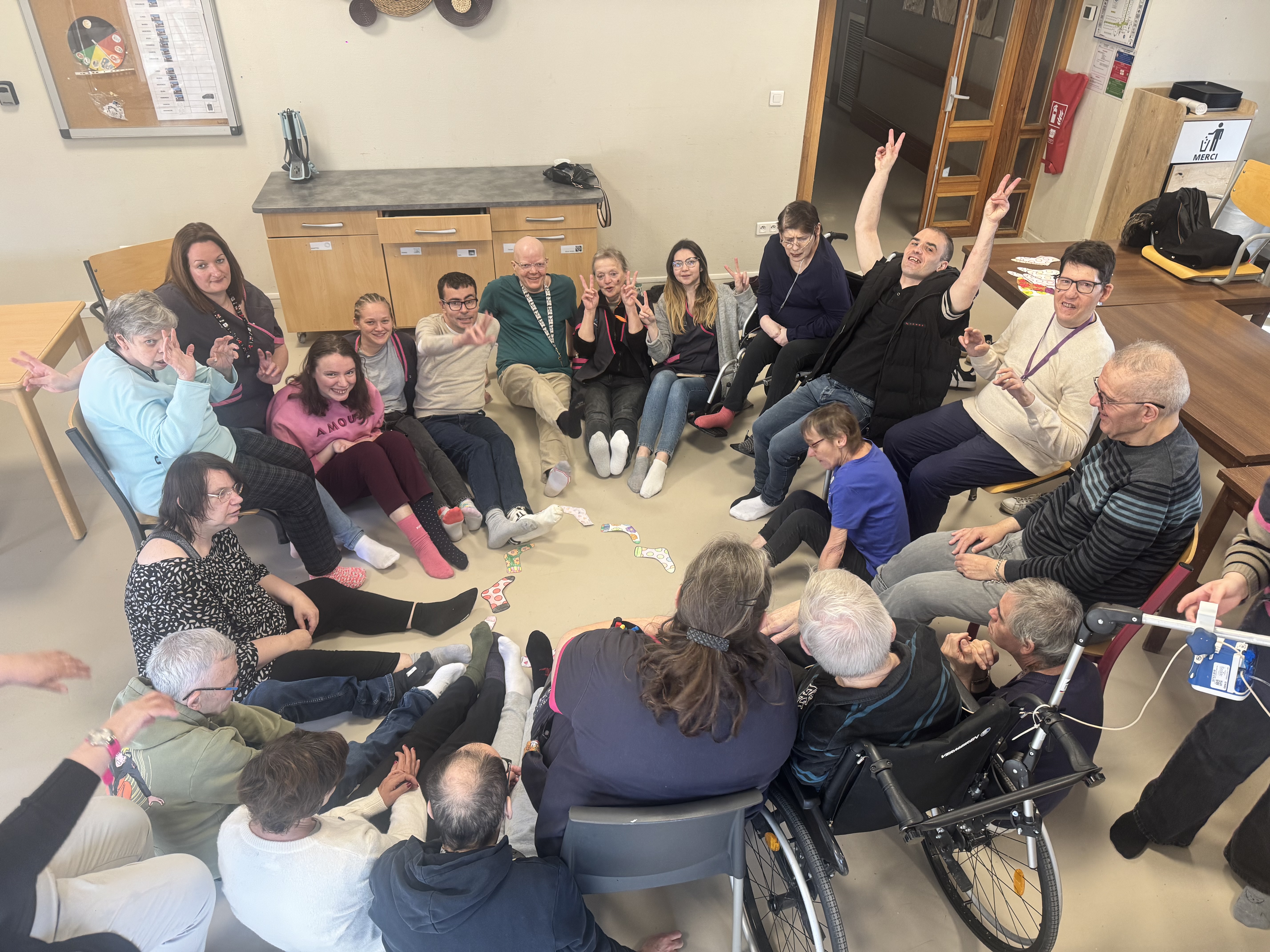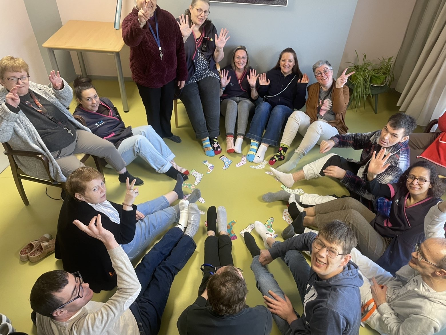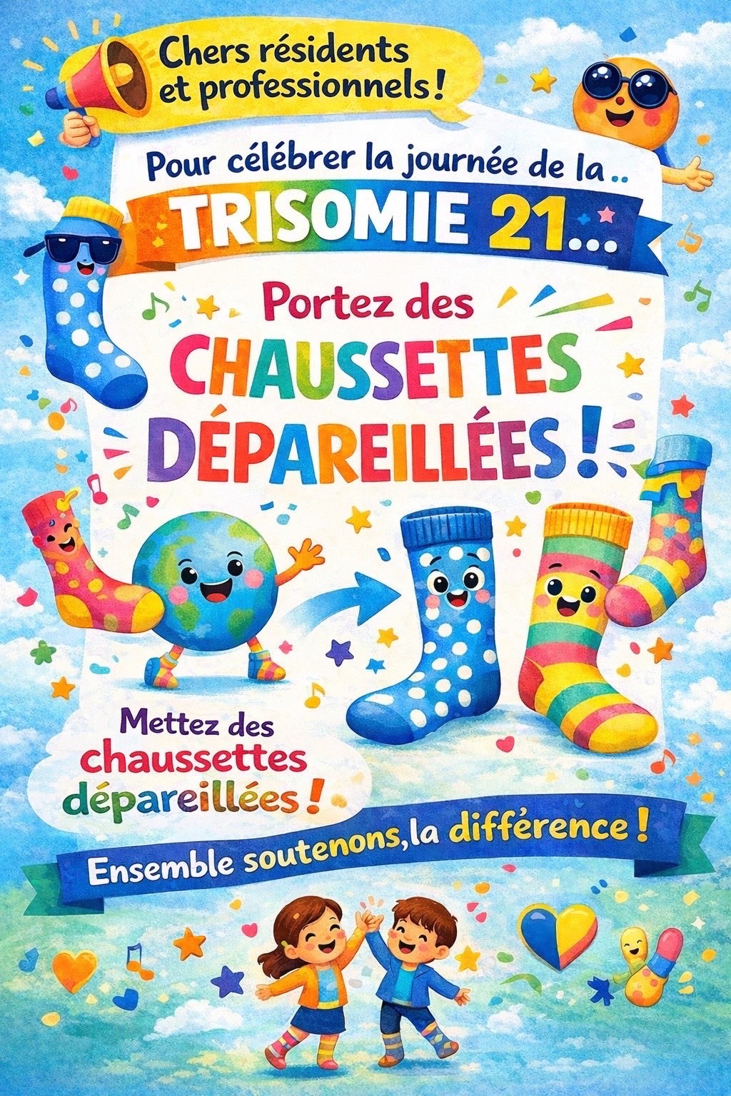 Ă lâoccasion de la journĂ©e mondiale de la trisomie 21, cĂ©lĂ©brĂ©e le 21 mars, les rĂ©sidents et les professionnels du Foyer dâAccueil MĂ©dicalisĂ© de Fenain se sont mobilisĂ©s autour dâun geste simple mais porteur de sens : porter des chaussettes dĂ©pareillĂ©es đ§Š