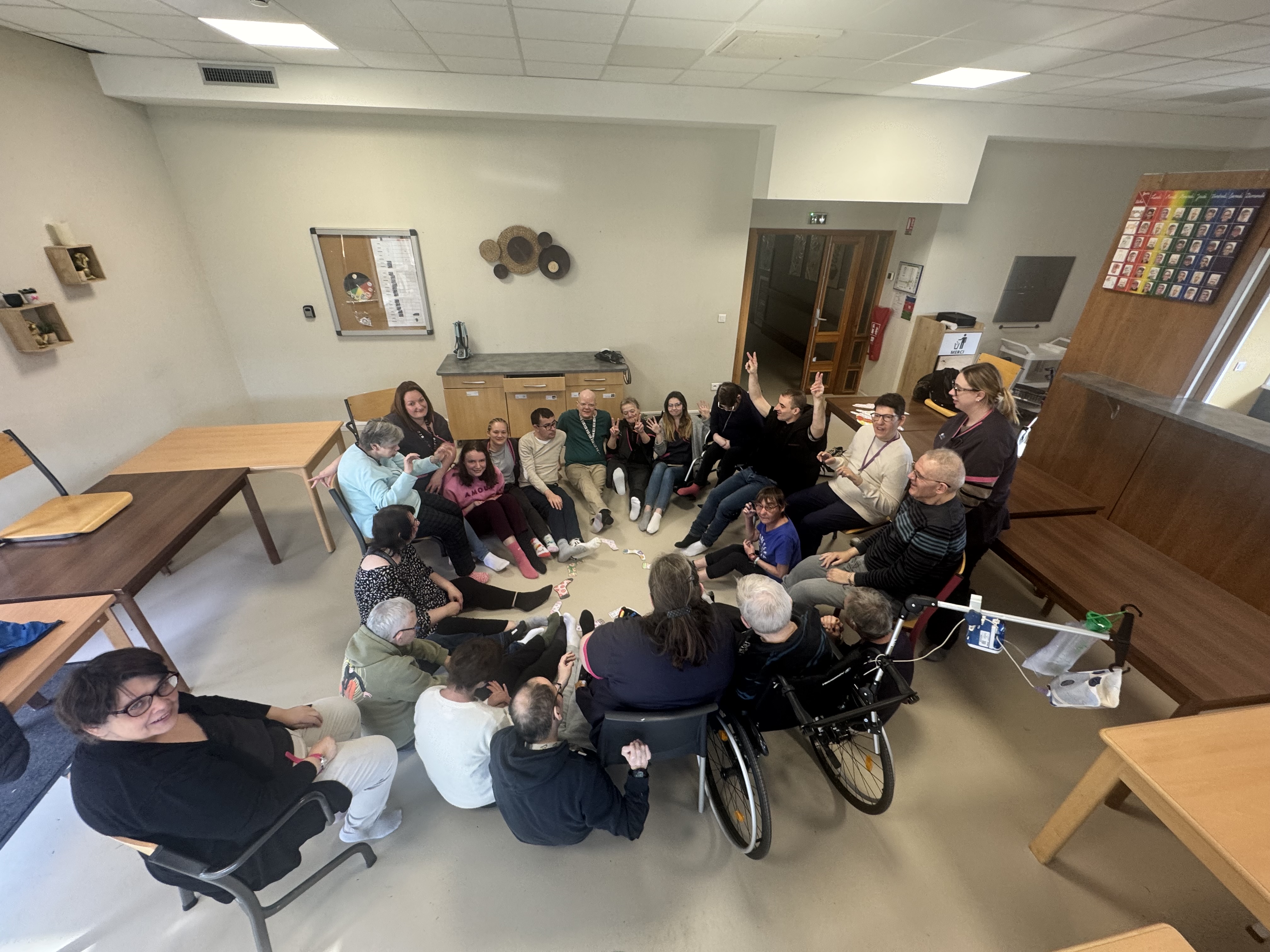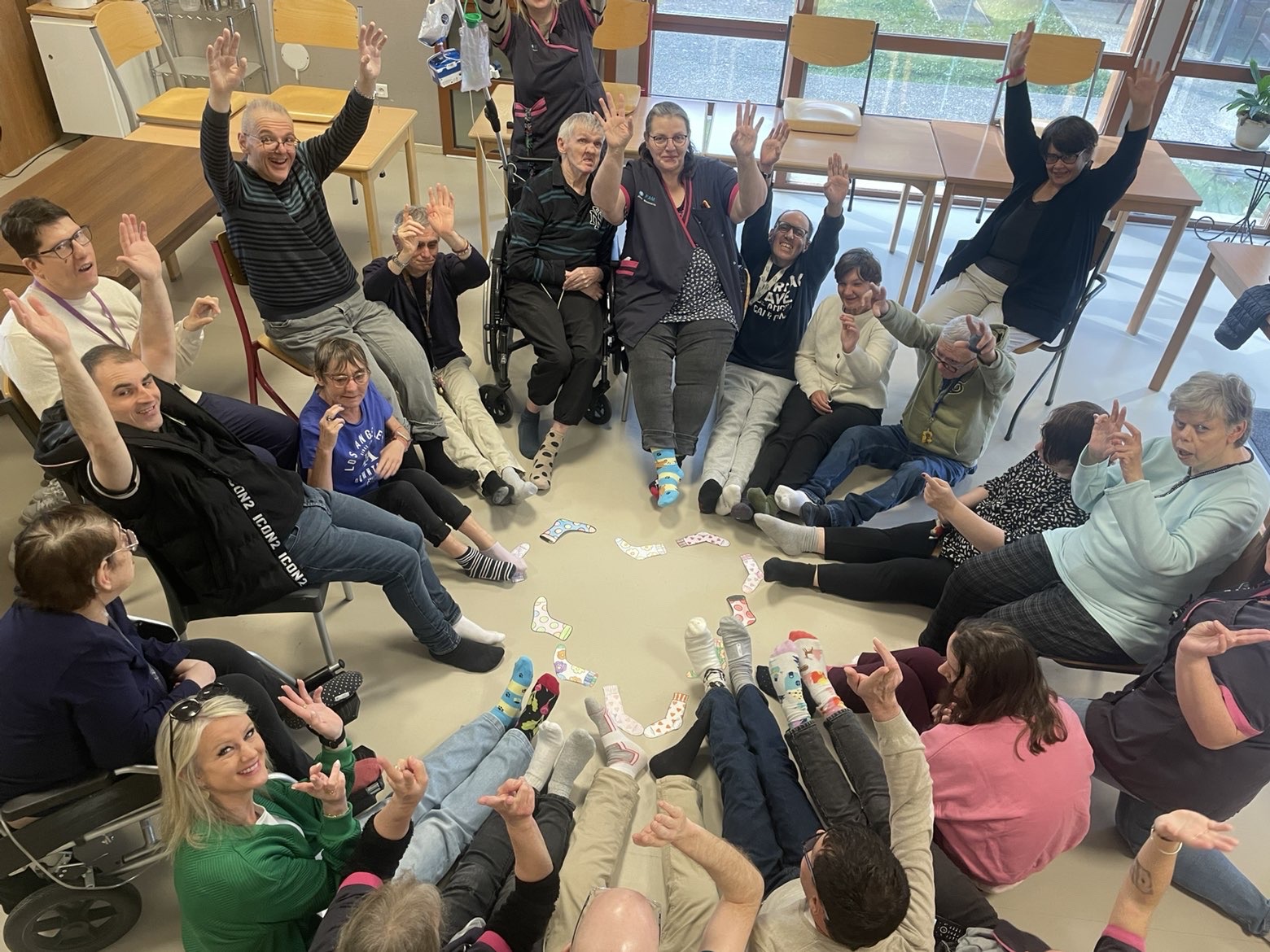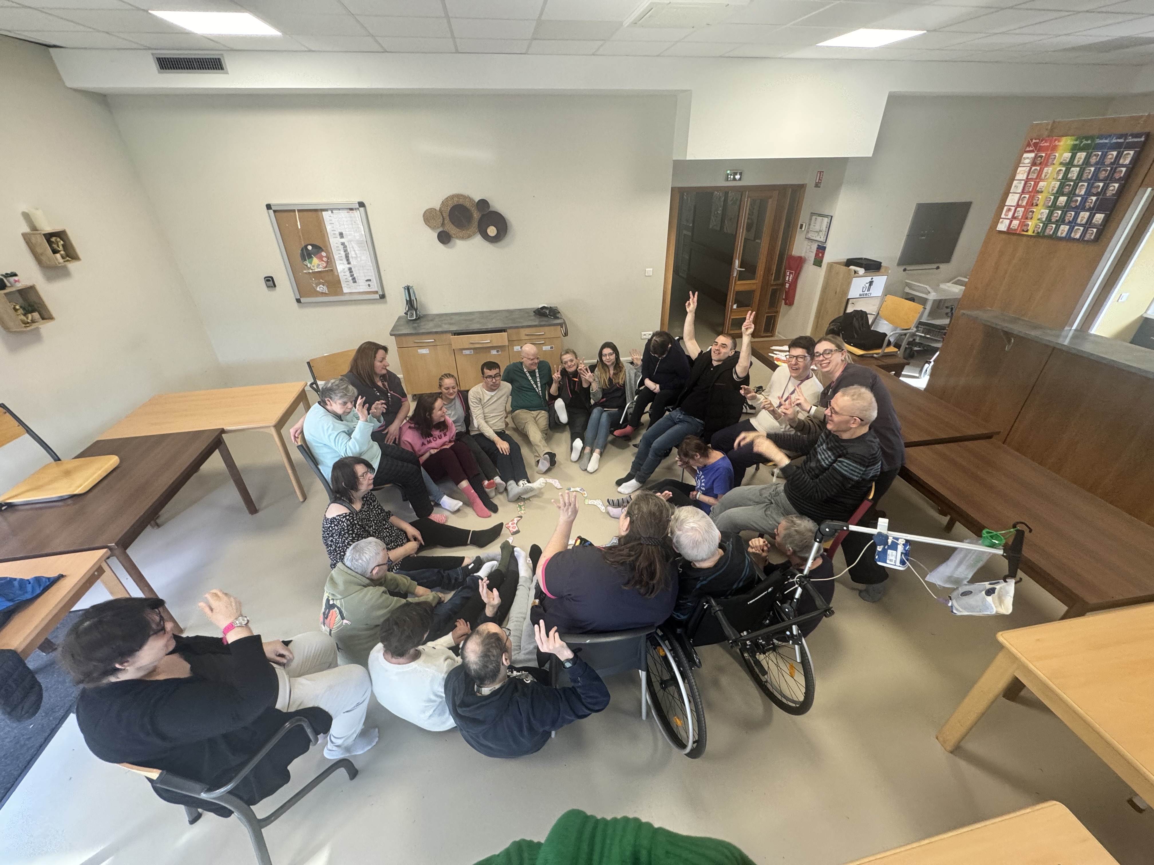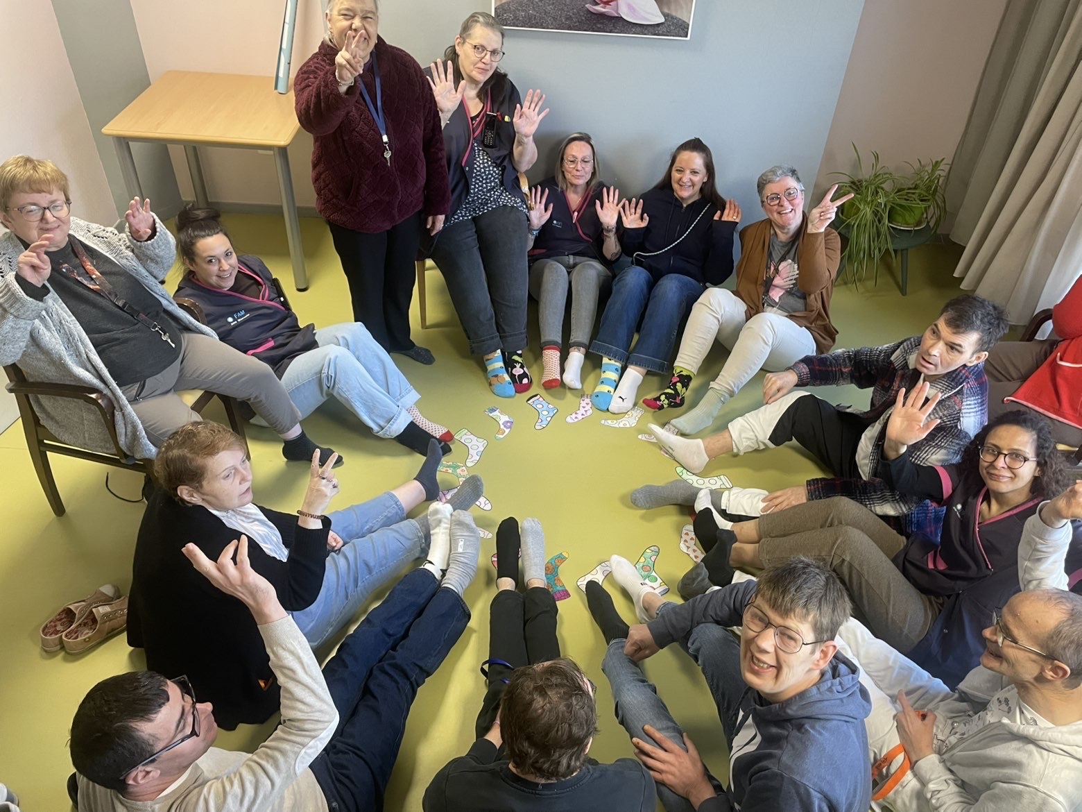Ă lâoccasion de la journĂ©e mondiale de la trisomie 21, cĂ©lĂ©brĂ©e le 21 mars, les rĂ©sidents et les professionnels du Foyer dâAccueil MĂ©dicalisĂ© de Fenain se sont mobilisĂ©s autour dâun geste simple mais porteur de sens : porter des chaussettes dĂ©pareillĂ©es đ§Š